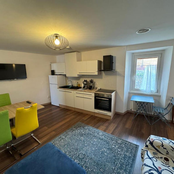 Quiet, modernly equipped and completely newly renovated apartment on the first floor, featuring a bedroom (double bed) and a living room with a sofa bed. It is comfortably furnished with a new kitchen, parquet flooring, and a modern bathroom with a rain shower, offering comfortable space for up to four guests. Bed linen and towels are provided.